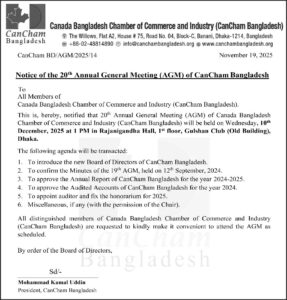 Webinar on “Canada Bangladesh Bilateral Trade, Investment and Education and how to take it to the next level” Read More